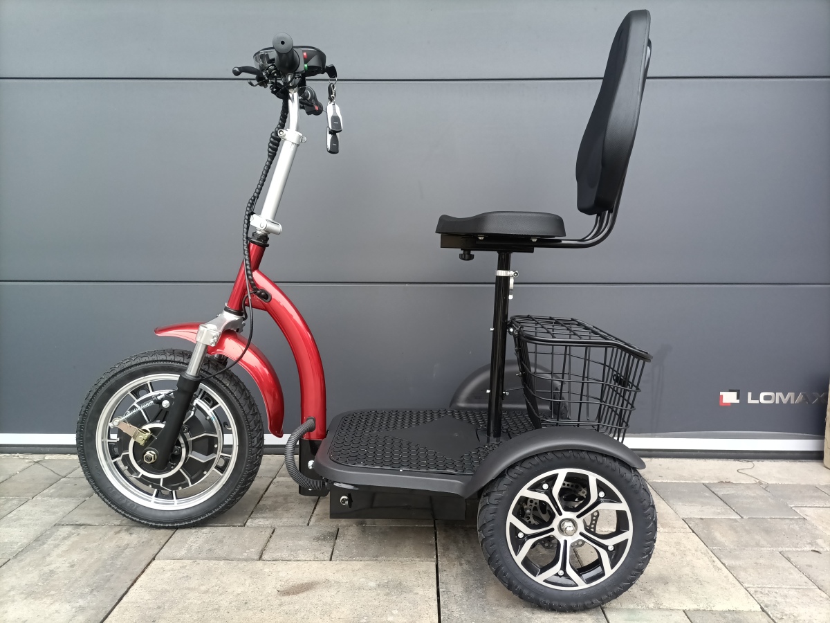 Elektrická tříkolka pro seniory FLASH RIDER CY5 800 W červená, lithiová baterie 20 Ah
